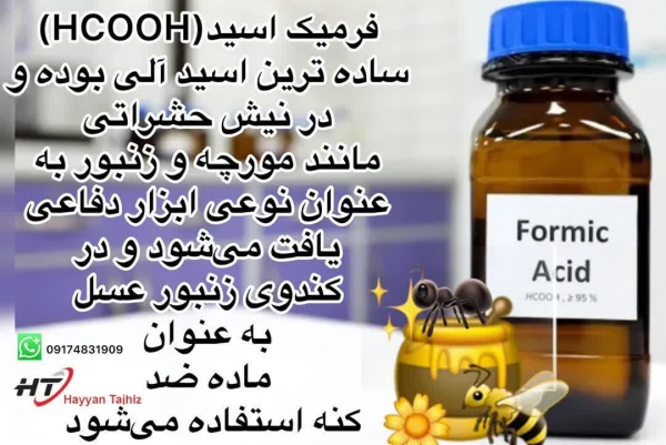 آیا می دانستید فرمیک اسید(HCOOH) ساده ترین اسید آلی بوده و در نیش حشراتی مانند مورچه و زنبور به عنوان نوعی ابزار دفاعی یافت میشود و در کندوی زنبور عسل به عنوان ماده ضد کنه استفاده میشود؟